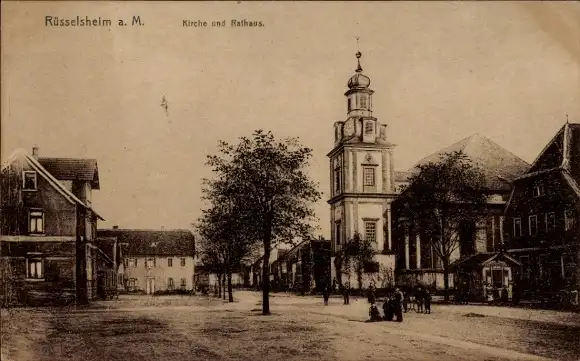 Ak Rüsselsheim am Main Hessen, Kirche und Rathaus