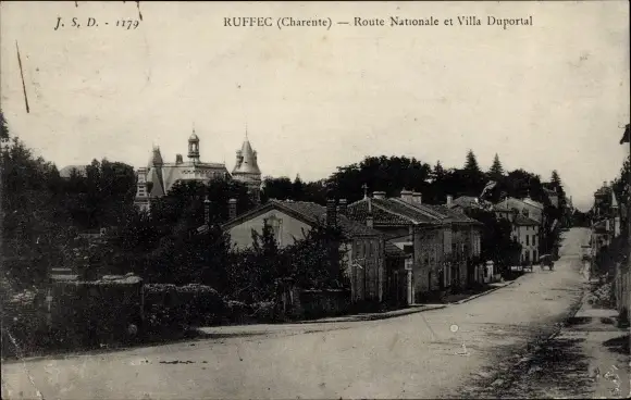 Ak Ruffec Charente, Route Nationale et Villa Duportal