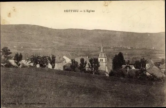 Ak Ruffieu Ain, Kirche, Teilansicht