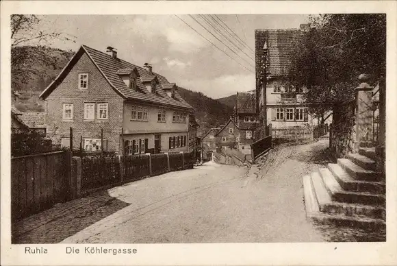 Ak Ruhla in Thüringen, Die Köhlergasse, Häuser, Straße, Landschaft