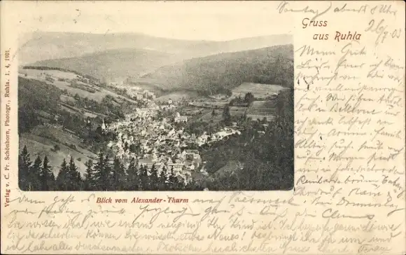 Ak Ruhla in Westthüringen, Totalansicht, Blick vom Alexanderturm