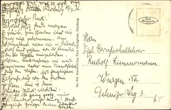 Zustand, siehe Scan, gelaufen, 1936 - ca 14 cm X 9 cm