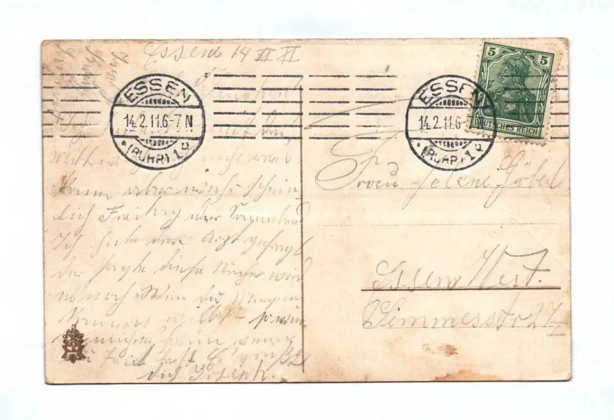 Erhaltung: leicht bestoßen und minimal unsauber, Stempeldruck vorne, alles weitere siehe bitte Scans.