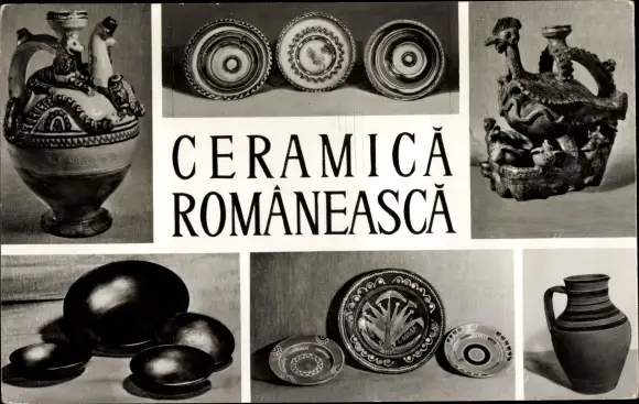 Ak Rumänien, Porzellan, Wasserkrug, Teller