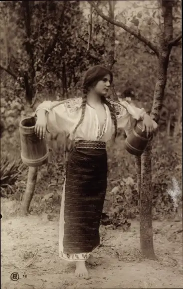 Ak Rumänien, Rumänische Bäuerin, Wasserträgerin, RPH 12