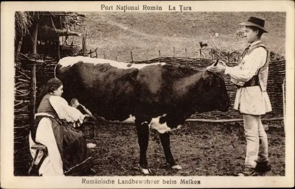 Ak Rumänien, Rumänische Landbewohner beim Melken