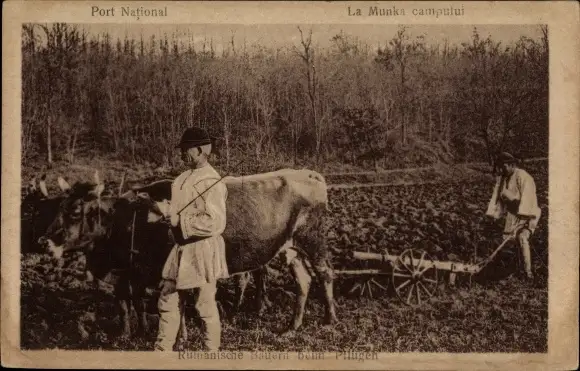 Ak Rumänische Bauern beim Pflügen, Rinderpflug