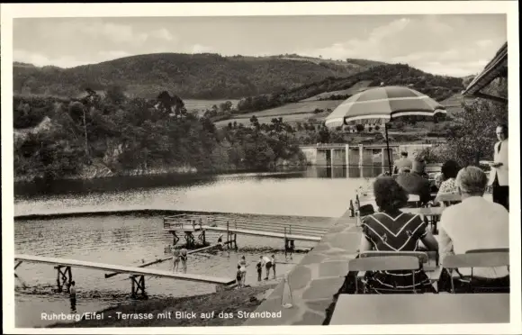Ak Rurberg Simmerath in der Eifel, Strandbad, Obersee, Terrassenpartie, Inh. Ignaz Gerards