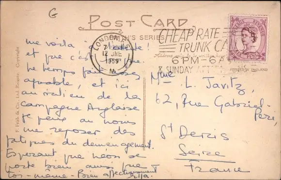 Zustand, siehe Scan, gelaufen, 1959 - ca 14 cm X 9 cm