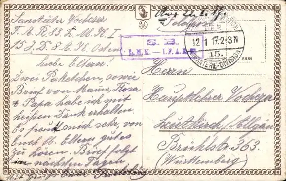 Zustand, siehe Scan, gelaufen, 1917 - ca 5 cm X 3 cm