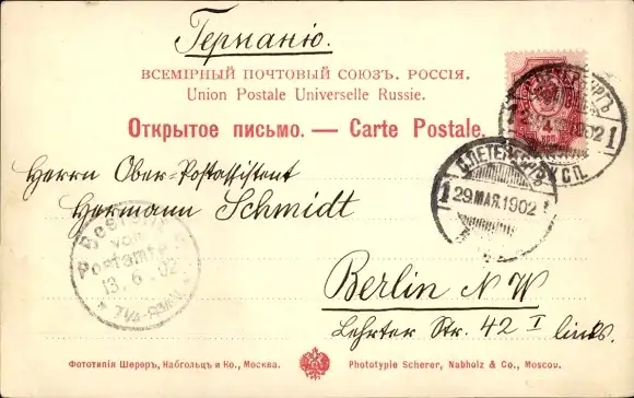 Zustand siehe Scan, gelaufen, 1902 - ca 14 cm X 9 cm