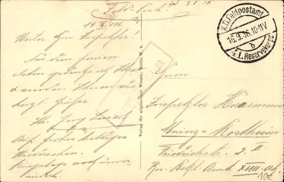 Zustand, siehe Scan, gelaufen, 1916 - ca 3 cm X 5 cm