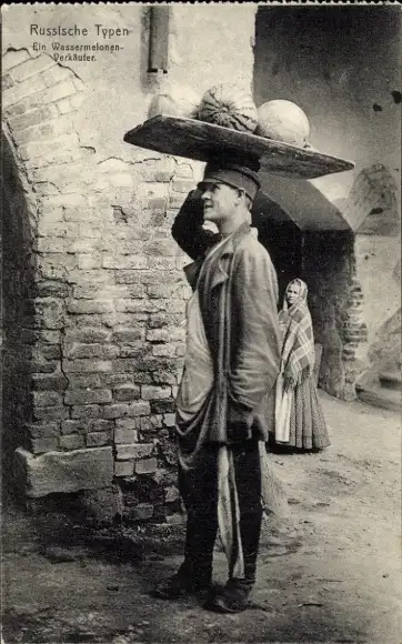 Ak Russische Typen, Wassermelonen Verkäufer, Straßenhändler