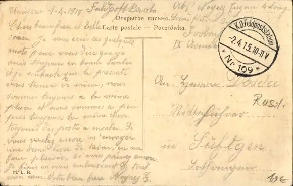 Zustand, siehe Scan, gelaufen, 1915 - ca 9 cm X 14 cm