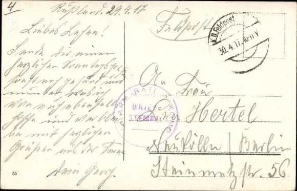 Zustand, siehe Scan, gelaufen, 1917 - ca 14 cm X 9 cm