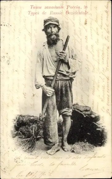 Ak Russland, Russischer Bauer, Besen, Russische Tracht