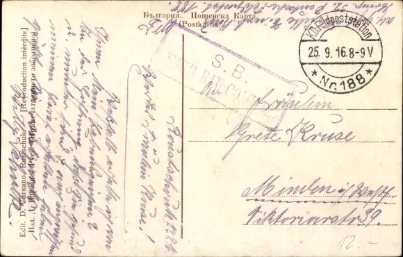 Zustand, siehe Scan, gelaufen, 1916 - ca 14 cm X 9 cm
