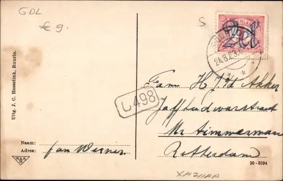 Ak Ruurlo Gelderland, Huize Ruurlo, Achterzijde