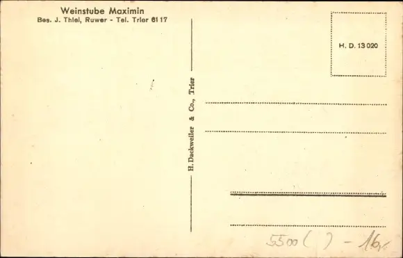 Ansichtskarte, Postkarte, Weinstube, Kelterei, Winzerei, Weinschänke, Trier