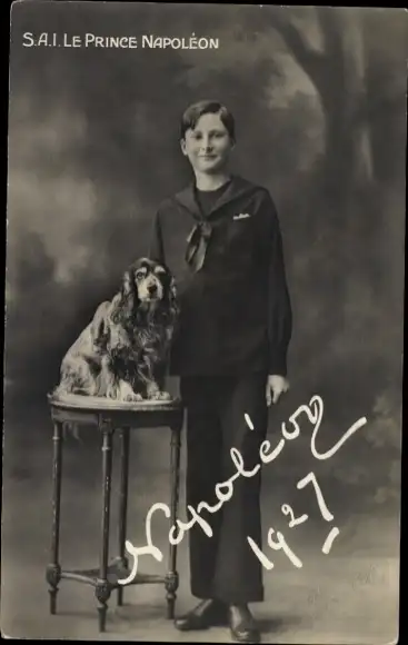 Ak S.A.I. Le Prince Napoléon, Louis Napoléon Bonaparte, 1927, Hund
