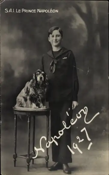 Ak S.A.I. Le Prince Napoléon, Louis Napoléon Bonaparte, 1927, Hund