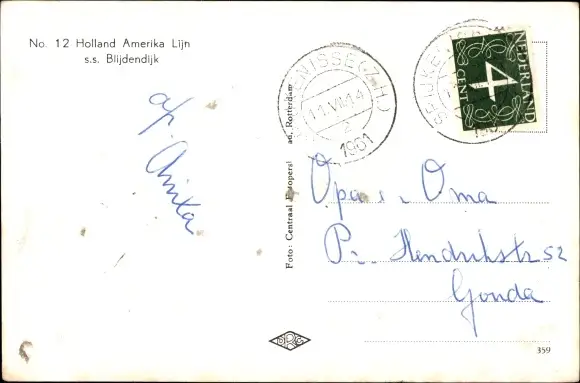 Ak SS Blijdendijk, Holland America Line, HAL