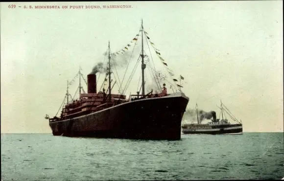 Ak S.S. Minnesota on Puget Sound, Washington, Dampfer, Great Northern Steamship Company