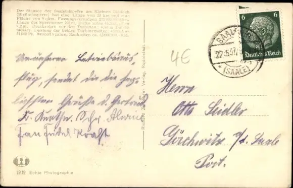 Ansichtskarte, Postkarte, Talsperre, Stausee, Staudamm, Staumauer