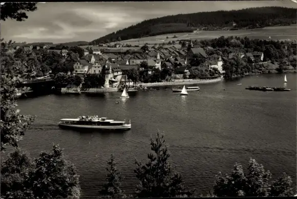 Ansichtskarte, Postkarte, Talsperre, Stausee, Staudamm, Staumauer, Hafen