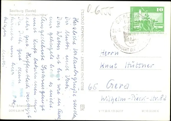 Ak Saalburg in Thüringen, Ferienheim Karl Marx Höhe, Außenansicht, Terrasse
