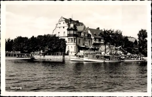 Ak Saalburg in Thüringen, Talsperre, Gasthaus, Boote