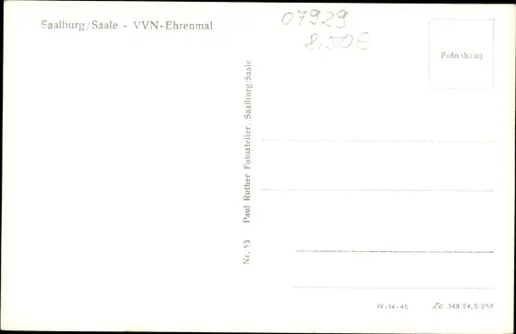 Ak Saalburg in Thüringen, VVN Ehrenmal