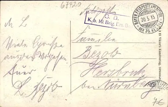Zustand siehe Scan, gelaufen, 1915 - ca 5 cm X 3 cm