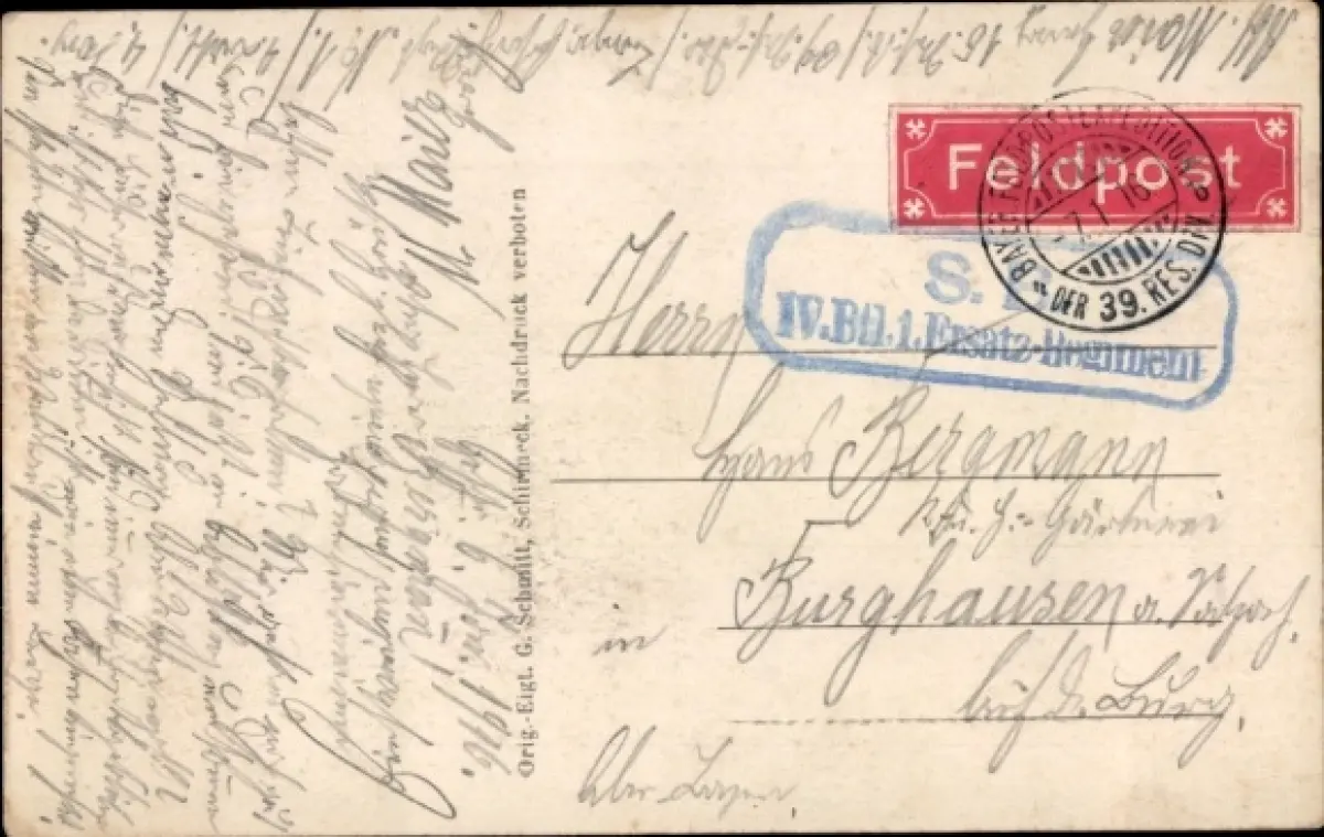 Zustand siehe Scan, gelaufen, 1916, 1916 - ca 14 cm X 9 cm