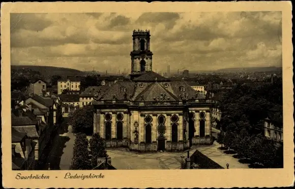 Ak Saarbrücken, Ansicht der Ludwigskirche, Straßenseite