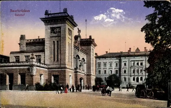 Ak Saarbrücken, Bahnhof, Straßenseite
