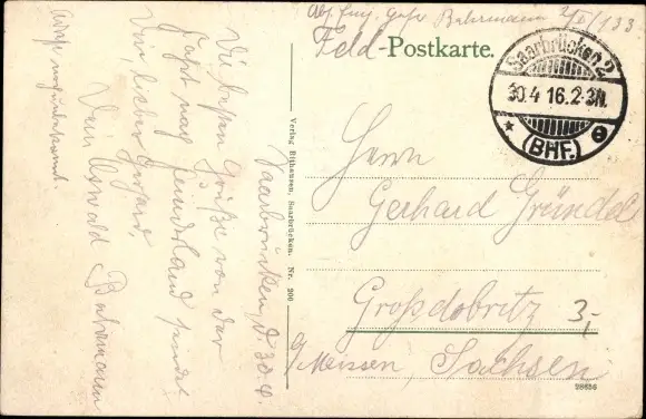 Zustand, siehe Scan, gelaufen, 1916 - ca 14 cm X 9 cm