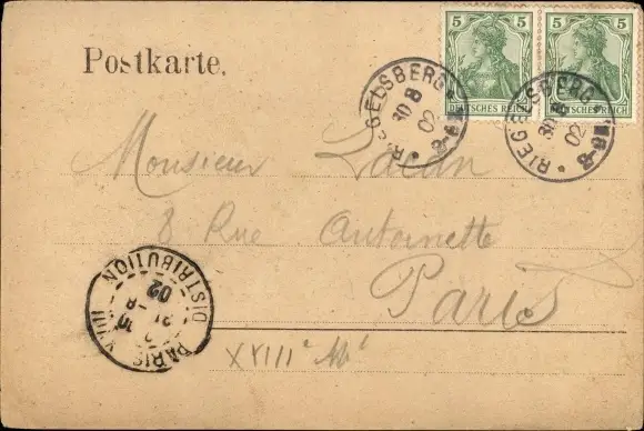 Zustand, siehe Scan, gelaufen, 1902 - ca 14 cm X 9 cm