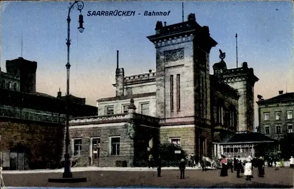 Ak Saarbrücken im Saarland, Bahnhof, Seitenansicht, Passanten