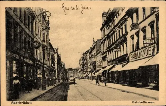 Ak Saarbrücken im Saarland, Bahnhofstraße, Geschäft Salamander