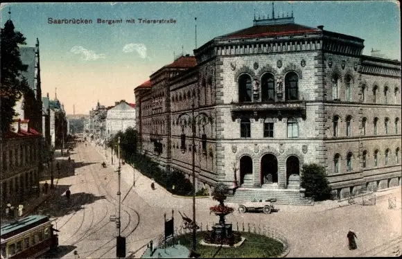 Ak Saarbrücken im Saarland, Bergamt mit Triererstraße