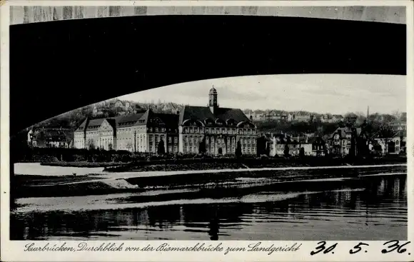 Ak Saarbrücken im Saarland, Durchblick Bismarckbrücke, Landgericht
