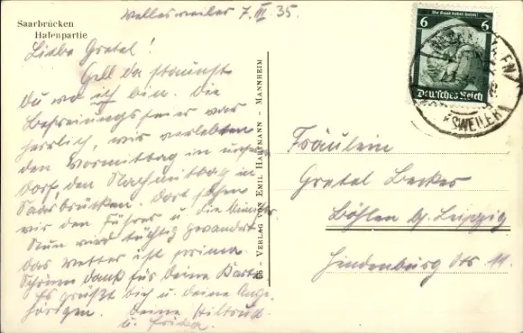 Zustand, siehe Scan, gelaufen, 1935 - ca 14 cm X 9 cm