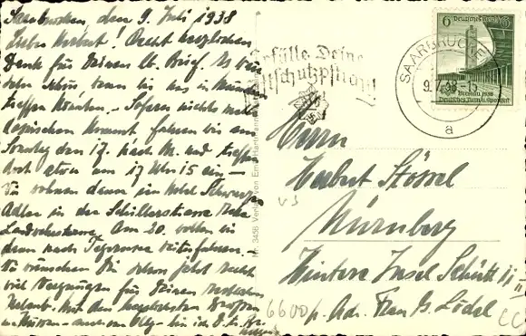 Zustand, siehe Scan, gelaufen, 1938 - ca 14 cm X 9 cm