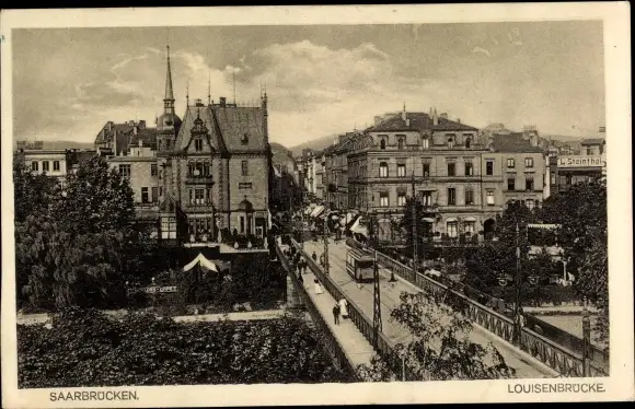 Ak Saarbrücken im Saarland, Luisenbrücke, Straßenbahn