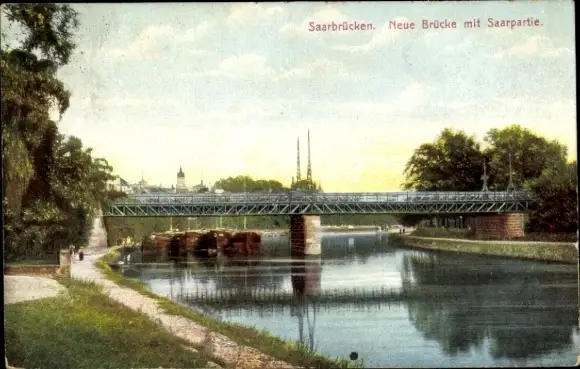 Ak Saarbrücken im Saarland, Neue Brücke mit Saarpartie