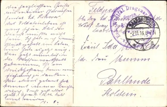 Zustand, siehe Scan, gelaufen, 1916 - ca 14 cm X 9 cm