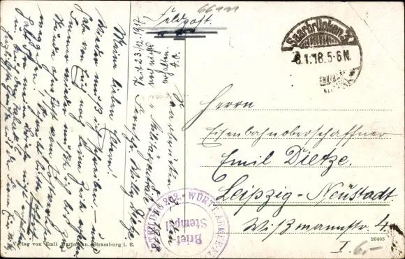 Zustand, siehe Scan, gelaufen, 1918 - ca 14 cm X 9 cm
