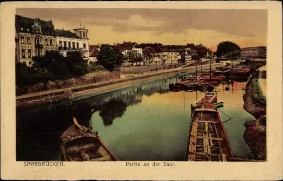 Ak Saarbrücken im Saarland, Partie an der Saar, Boote