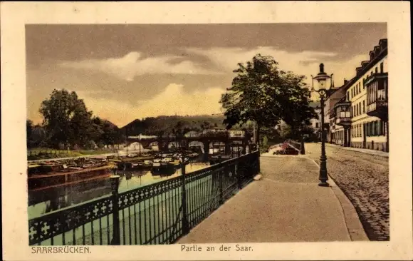 Ak Saarbrücken im Saarland, Partie an der Saar, Brücke